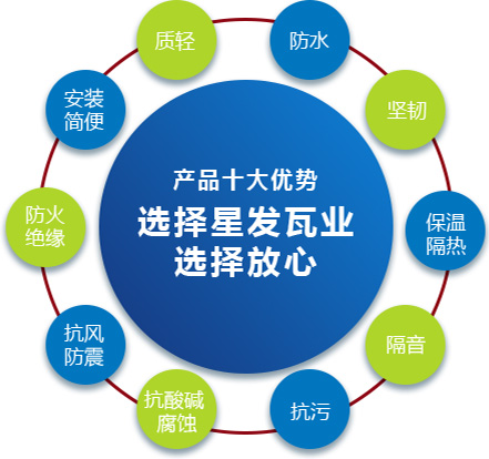 公司主要產(chǎn)品有《星發(fā)牌》合成樹(shù)脂瓦、APVC防腐耐候復(fù)合瓦、APVC發(fā)泡隔熱瓦、PVC半透明瓦、PVC防腐隔熱瓦、PVC防腐瓦、PVC防腐平板、PVC條紋板和ASA/PVC超耐候復(fù)合瓦等產(chǎn)品。產(chǎn)品一經(jīng)推出,已被廣泛應(yīng)用于國(guó)內(nèi)各類(lèi)平改坡項(xiàng)目和大型工業(yè)項(xiàng)目,遠(yuǎn)銷(xiāo)歐洲、亞洲、美洲和非洲等國(guó)外市場(chǎng),還獲選為廣州亞運(yùn)會(huì)、深圳大運(yùn)會(huì)、四川災(zāi)后重建等工程項(xiàng)目的應(yīng)用產(chǎn)品。公司在不斷創(chuàng)新和改革的基礎(chǔ)上,力求以更好的產(chǎn)品、優(yōu)良的服務(wù),用心、專心服務(wù)好每一個(gè)客戶。